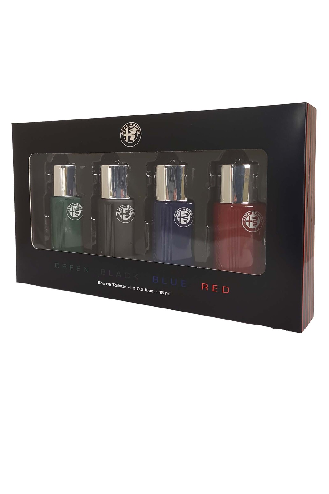 Alfa Romeo Eau de Toilette 4 x 15ml Green Black Blue Red Mens Fragrance