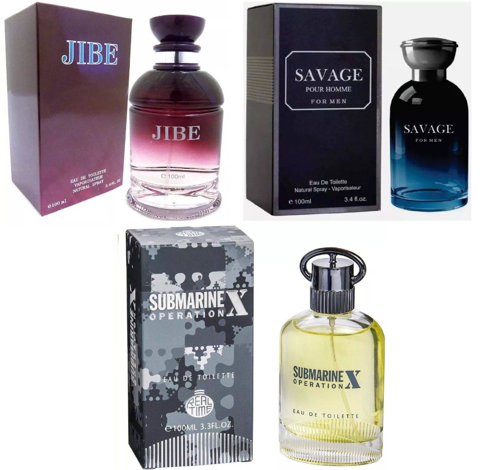Modak 3 Pack Mens Perfume Designer Fragrance Jibe Savage Submarine EDT 100ml