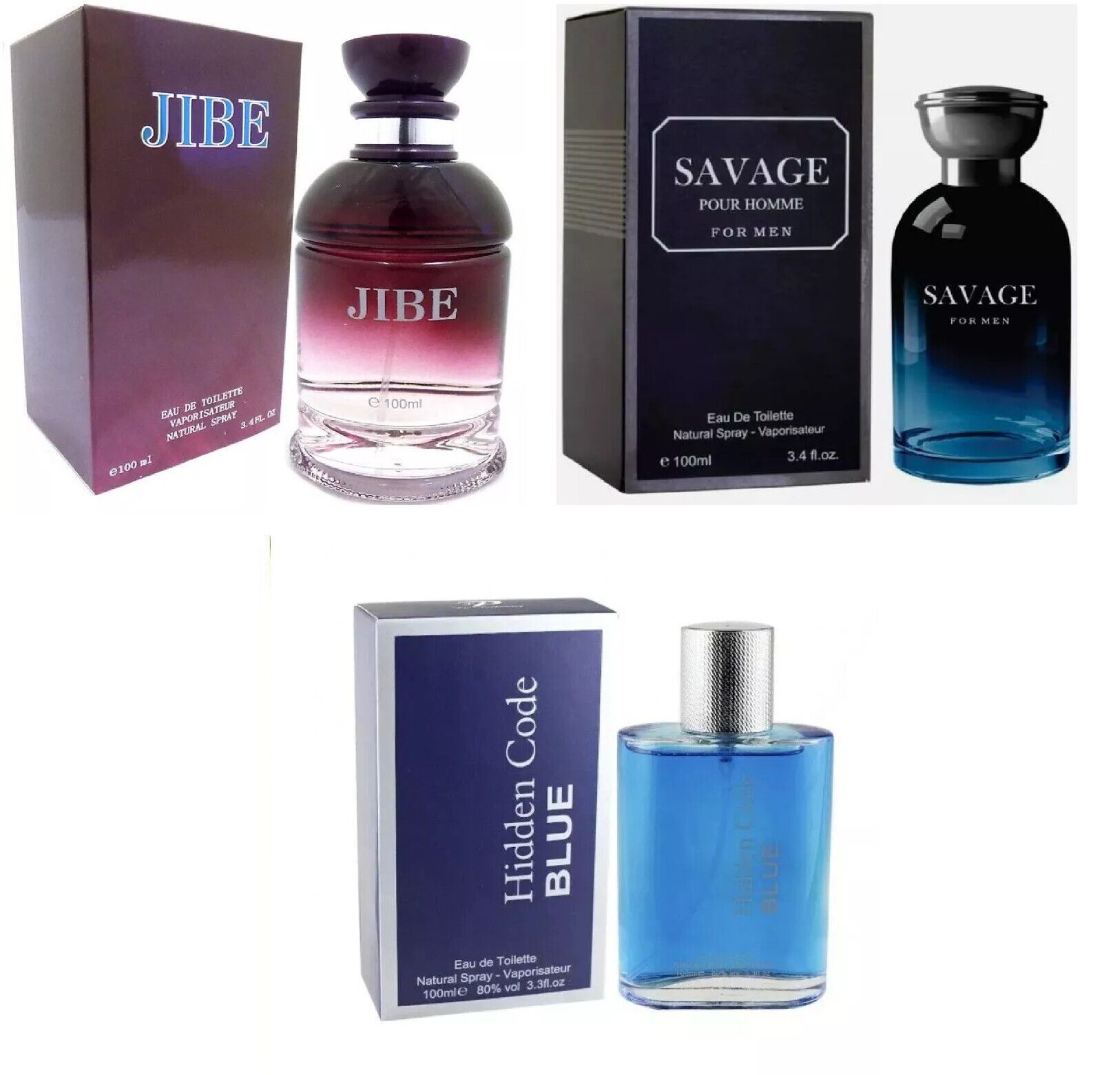 Modak 3 Pack Mens Perfume Designer Fragrance Jibe Savage Hidden Code EDT 100ml