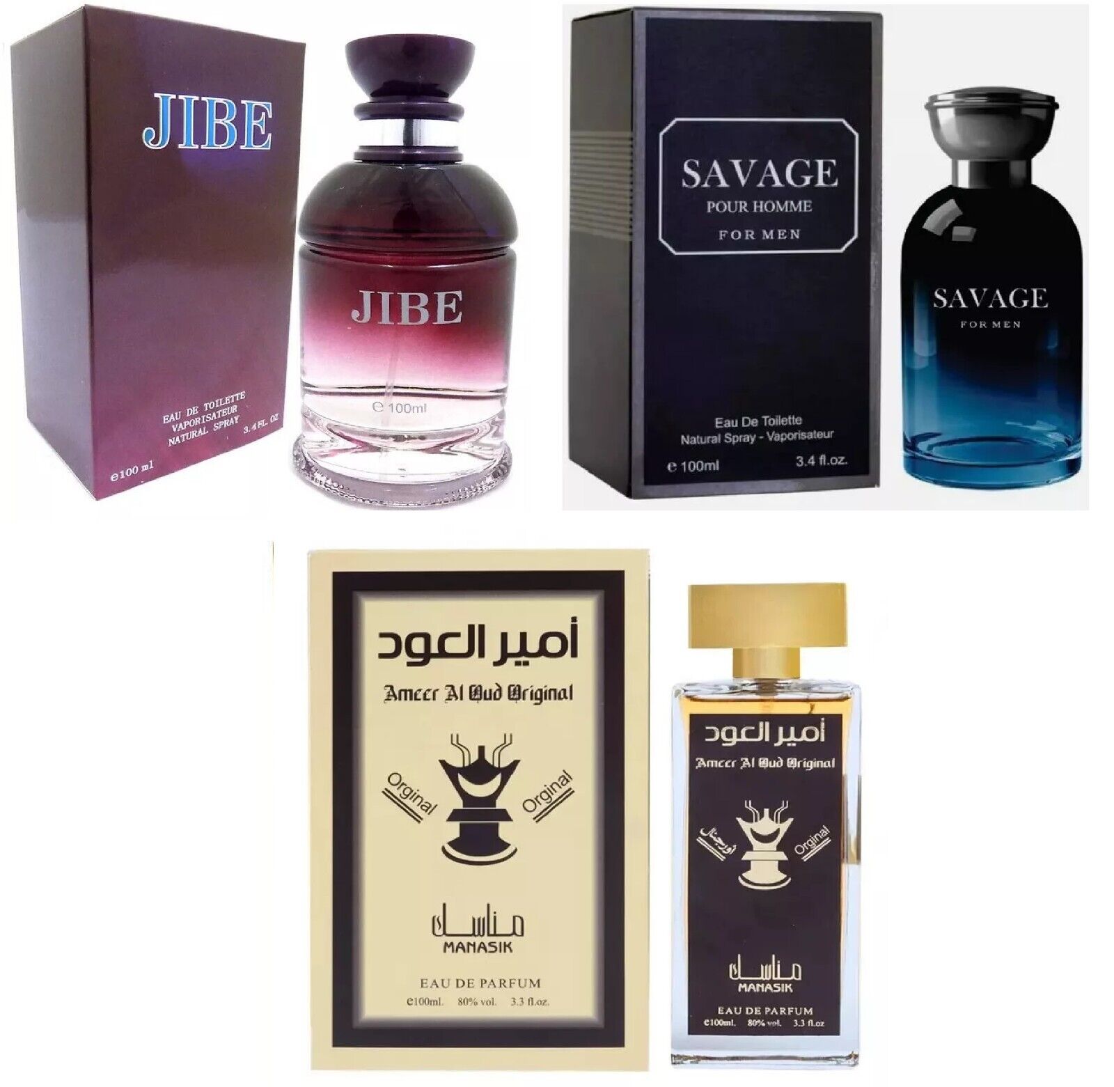 Modak 3 Pack Mens Perfume Designer Fragrance Jibe Savage Ameer Al OUD EDT 100ml