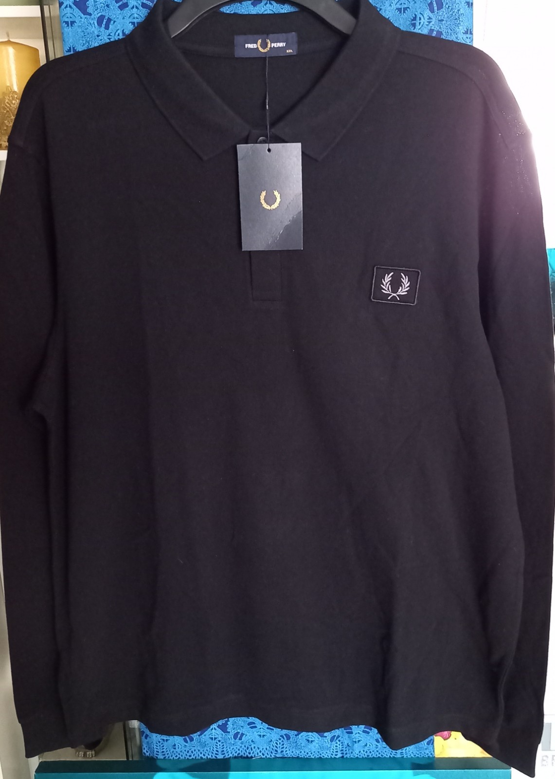 Fred Perry Badge Logo Long Sleeve Black Polo Shirt, Men's XXL