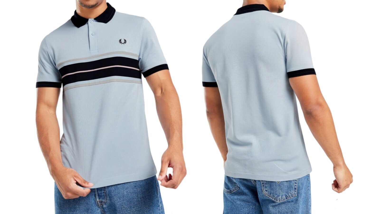 Fred Perry Men's Light Smoke Tramline Panel Polo Size UK XL 44" Chest SM5184 146