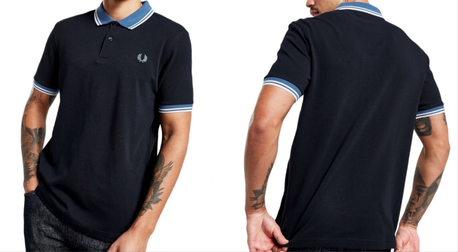 Fred Perry Men's Navy Contrast Twin Tipped Polo Size UK M 38" Chest M4567