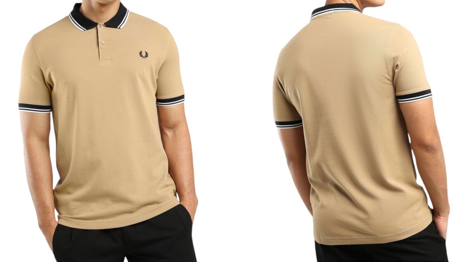 Fred Perry Mens Warmstone/Black Contrast Twin Tipped Polo Size UK L 41" Chest