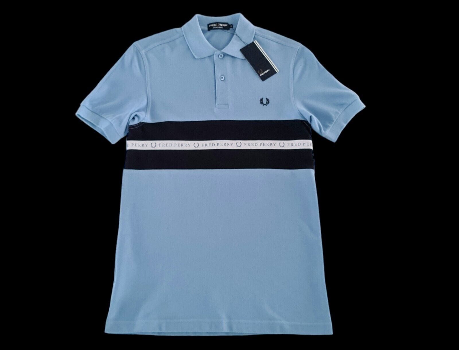 Fred Perry Mens Sky Blue Sports Tape Polo Size UK Small 33- 34" Chest M5566 E74