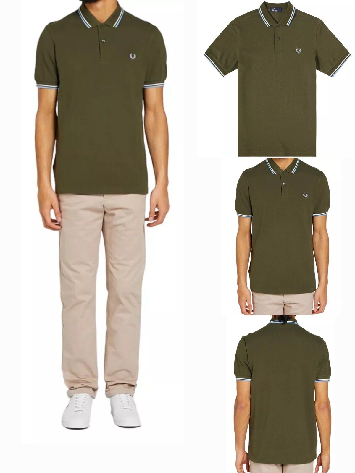 Fred Perry Mens Twin Tipped Rifle Green Polo Size UK Medium 36 - 38" Chest