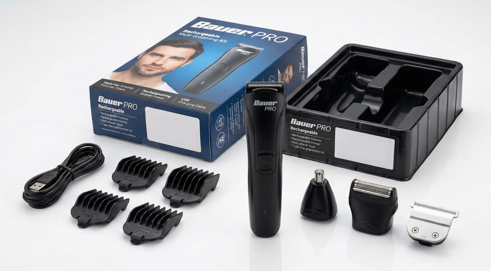 Bauer 5 in 1 Men's Grooming Kit USB Rechargeable Hair Clipper Trimmer Shaver