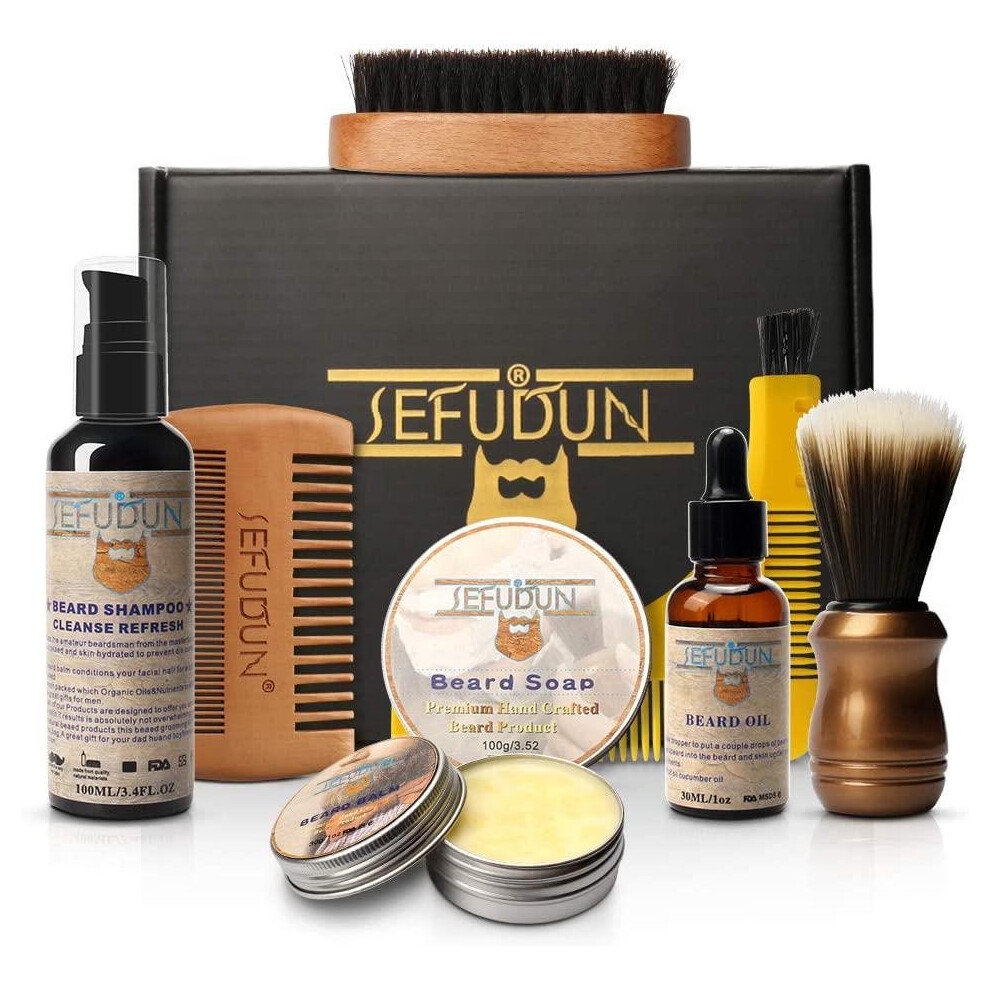 Sefudun Premium Men's Beard Grooming Kit 8pcs, Complete Beard Care & Shaving Gift Set in Travel Gift Bag