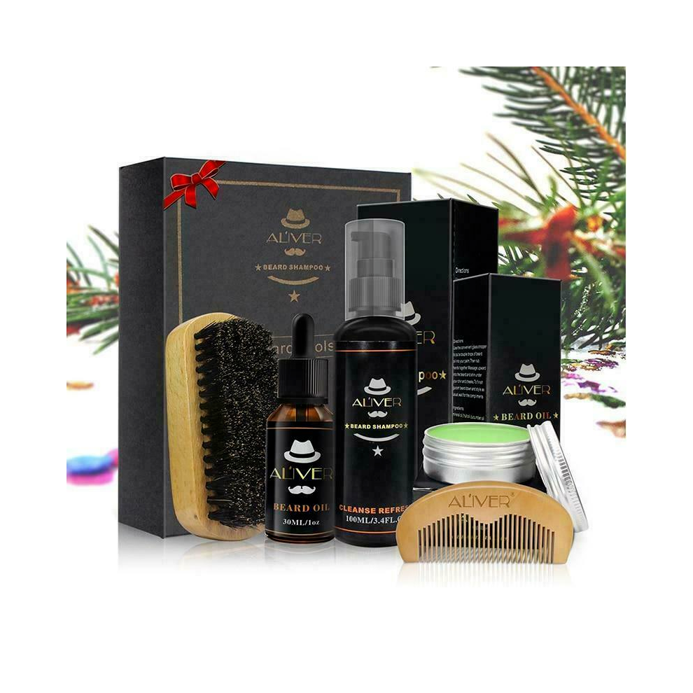 Men's Gent's Beard Grooming Kit Gift Set Shampoo Oil Wax Wooden Brush Comb Hair