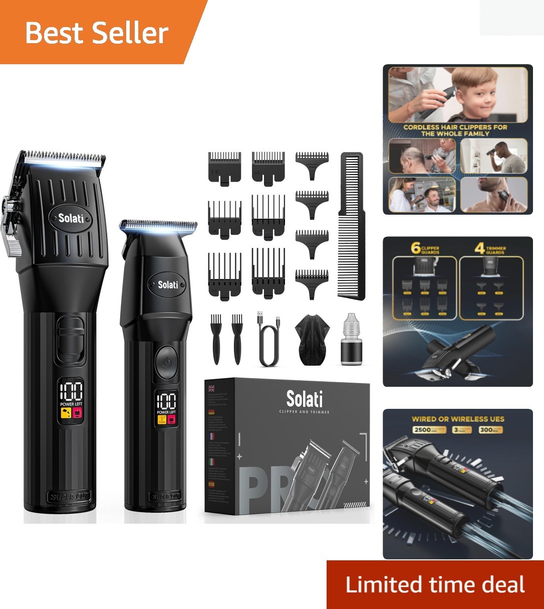 Professional Cordless Electric Hair Clipper Men's Grooming Kit