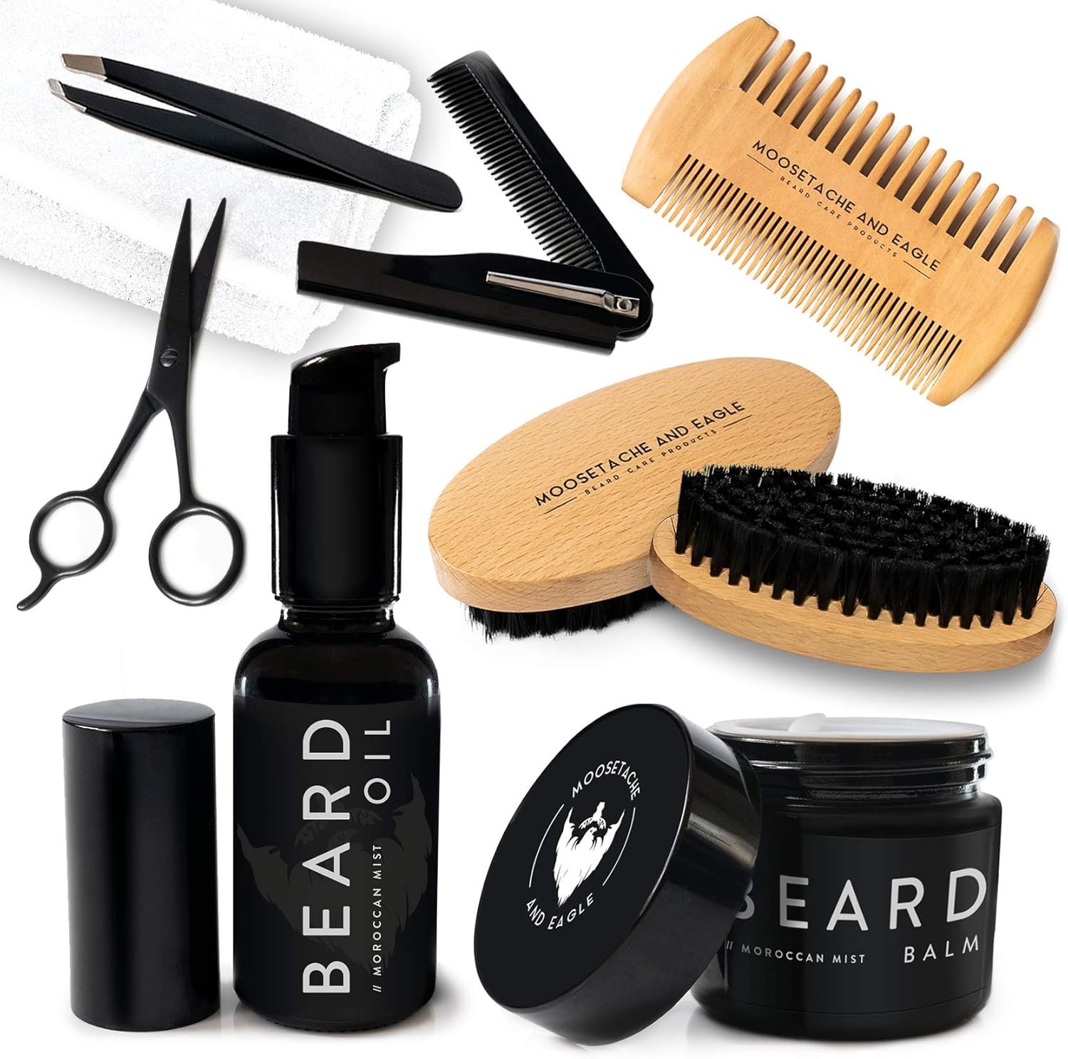 [Upgraded] Moosetache And Eagle 8 in 1 Mens Beard Grooming Kit for Men - 100% V