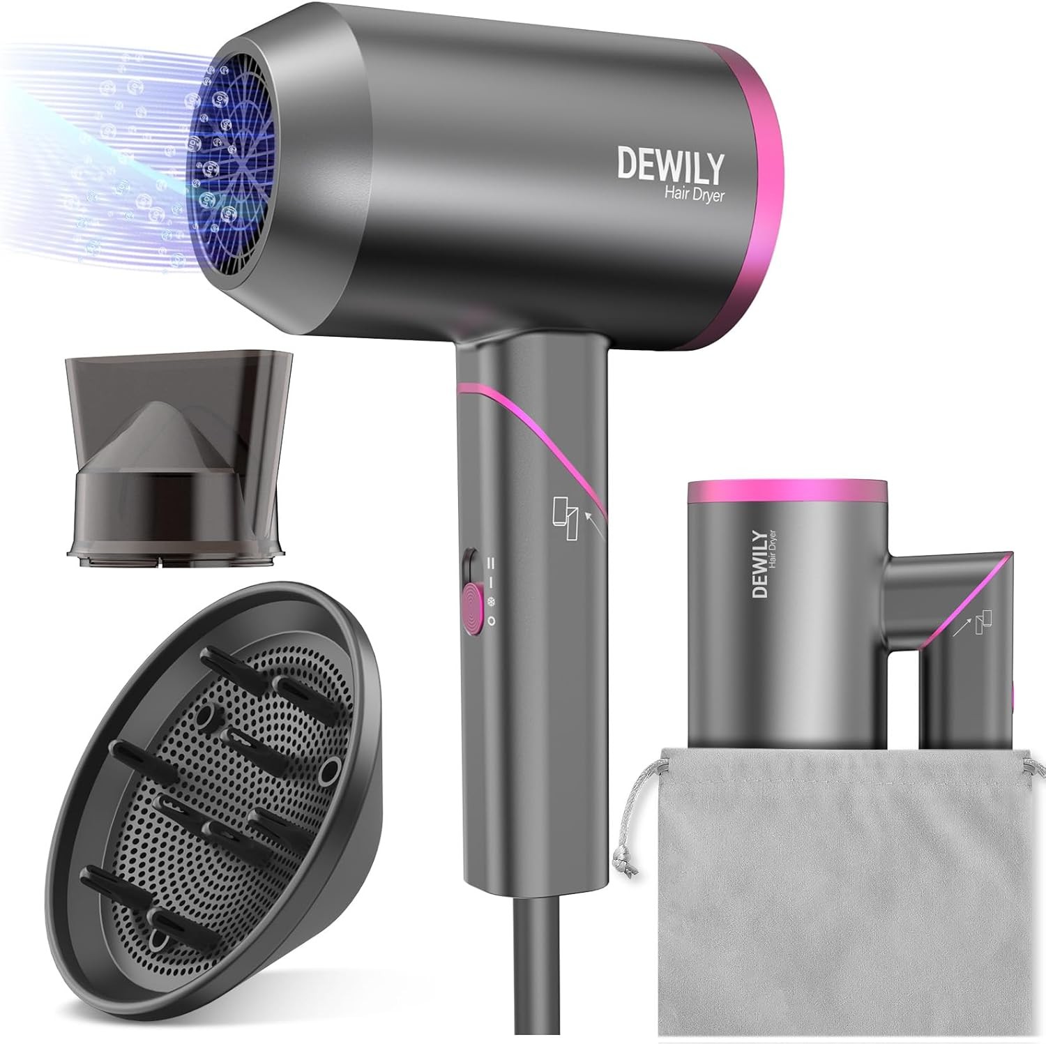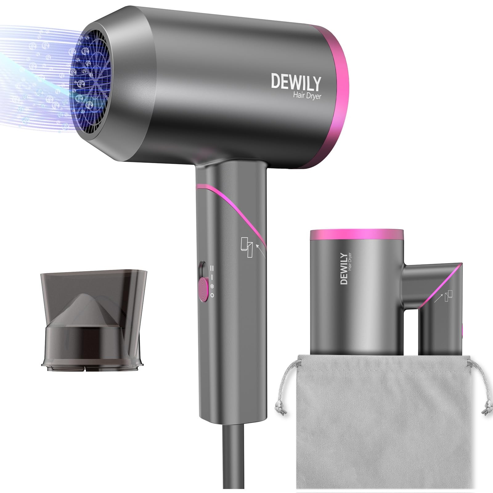 Hair Dryer Travel Hairdryers for Women Men-Dewily Powerful Foldable Ironic Hair