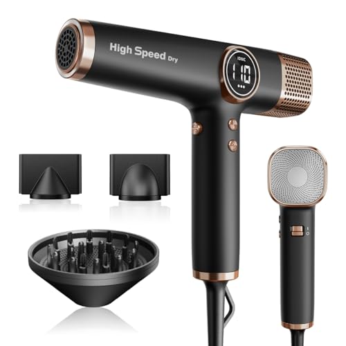 TQQ Hair Dryer, 200 Million Negative Ionic Hairdryer, 110, 000 RPM High Speed Brushless Motor Blow Dryer for 2min Fast Drying, 57dB Low Noise Travel Hairdryers for Women and Men