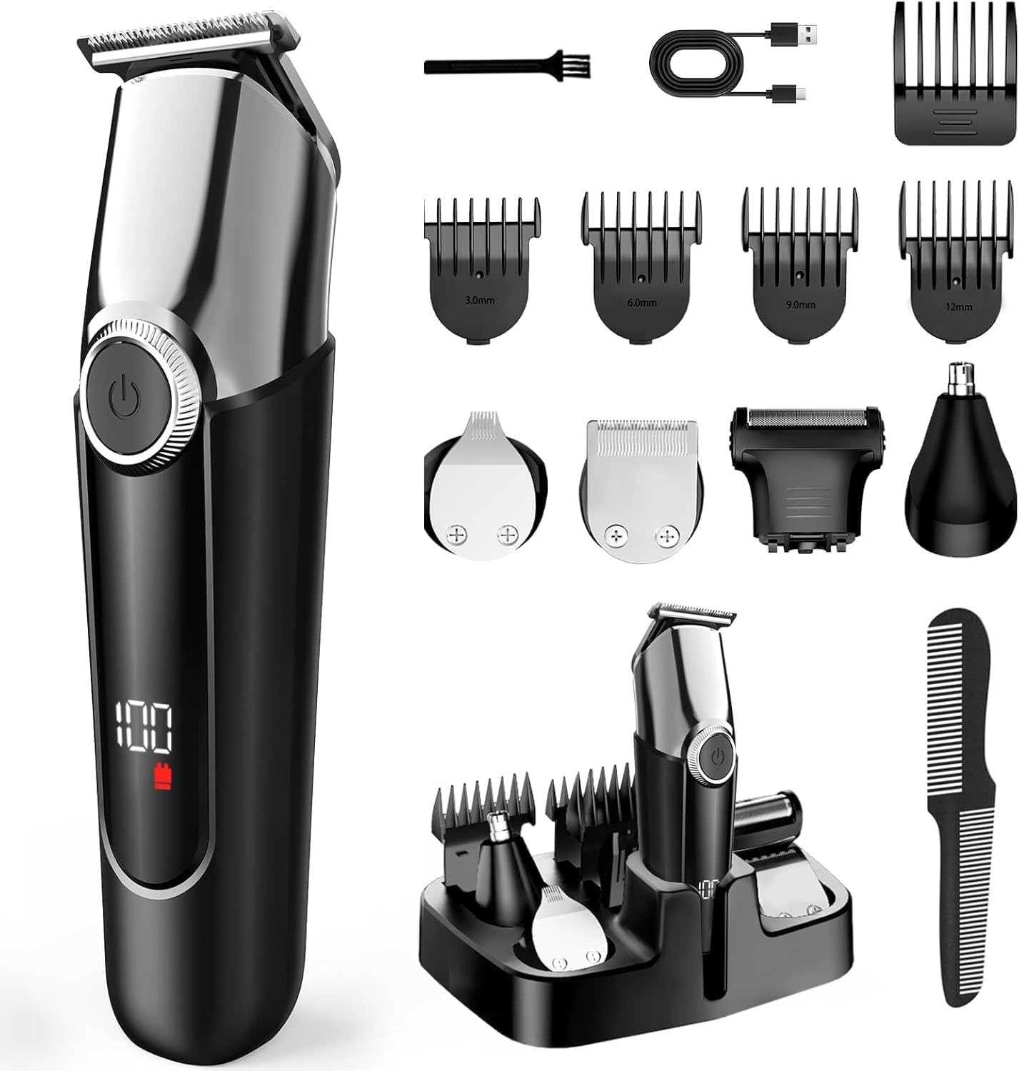Hair Clippers Men,Cordless Beard Trimmer,Professional Clippers Grooming Kit,Precision T-Blade Mens Trimmer with LED,Shavers for Men Beard Shaper,Electric Razor USB Rechargeable,Gifts for Mens