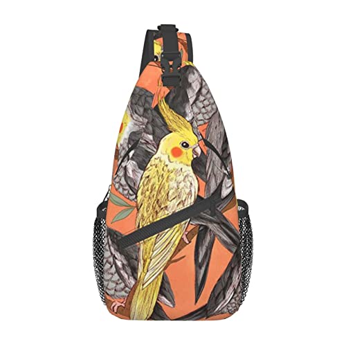 Mens Sling Shoulder Bags Little Cockatiel Printed Crossbody Backpack Hiking Sports Chest Pack for Men and Women