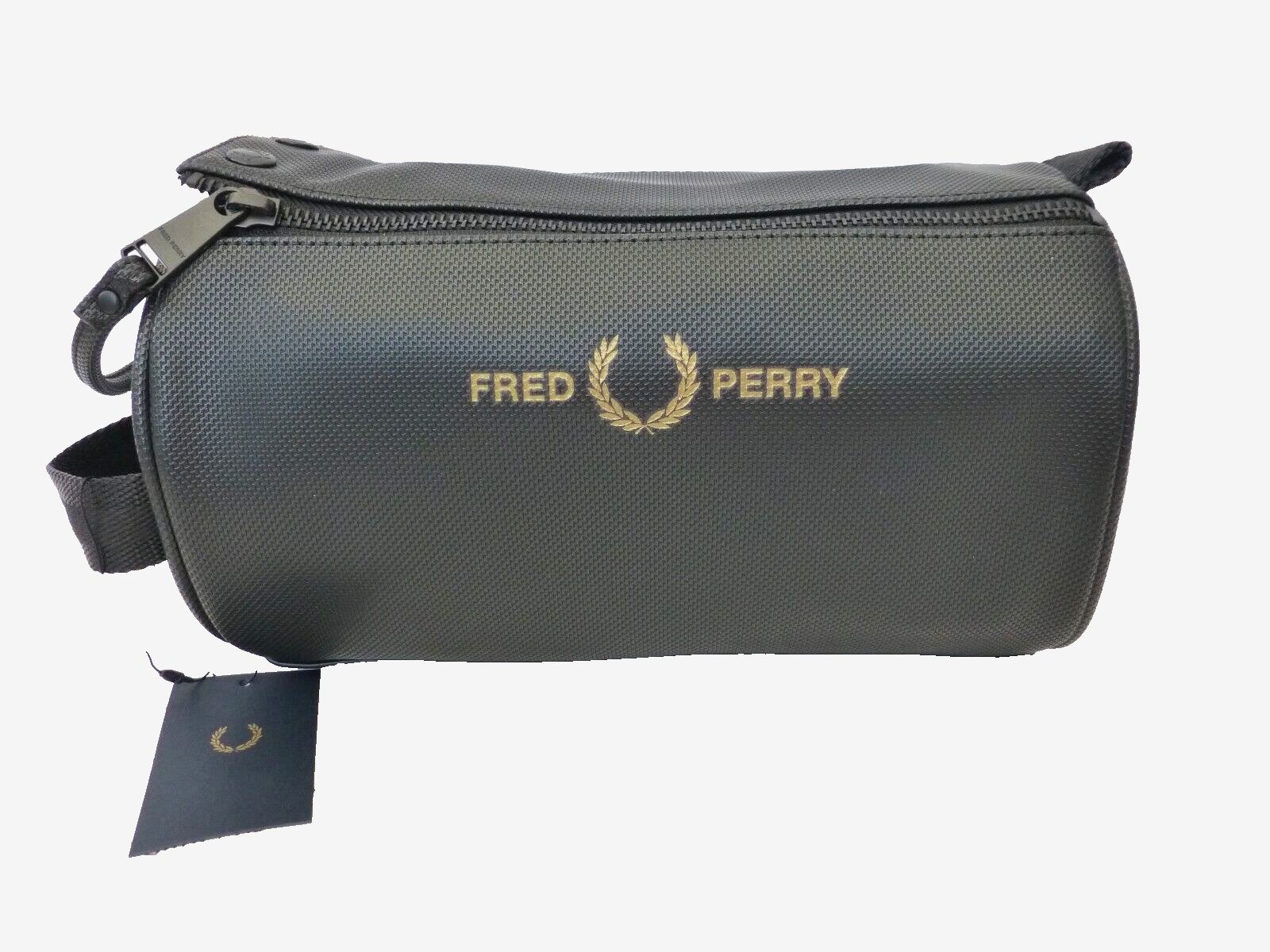FRED PERRY Barrel Wash Bag Mens Pique Black PU Travel Kit Toiletry Bags BNWT
