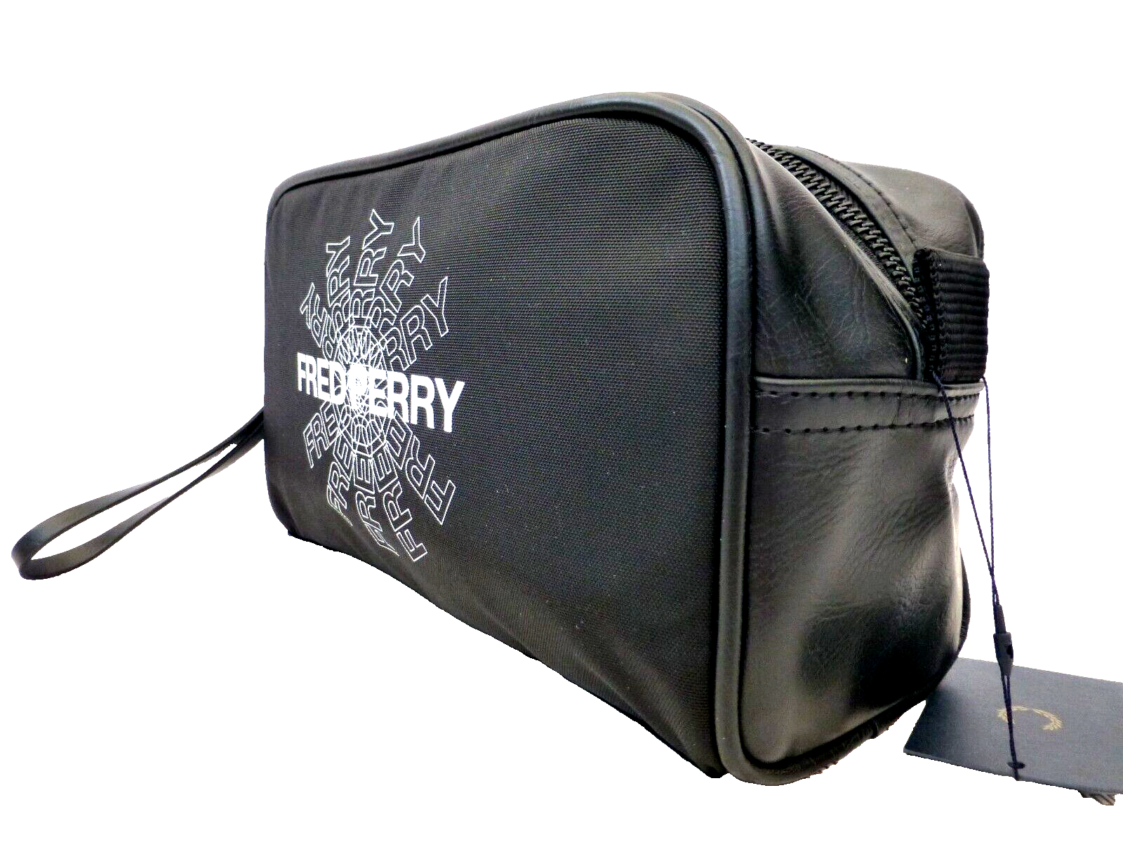 FRED PERRY Wash Bag Mens Graphic Black Dual-Fabric Travel Toiletry Kit Bags R£70