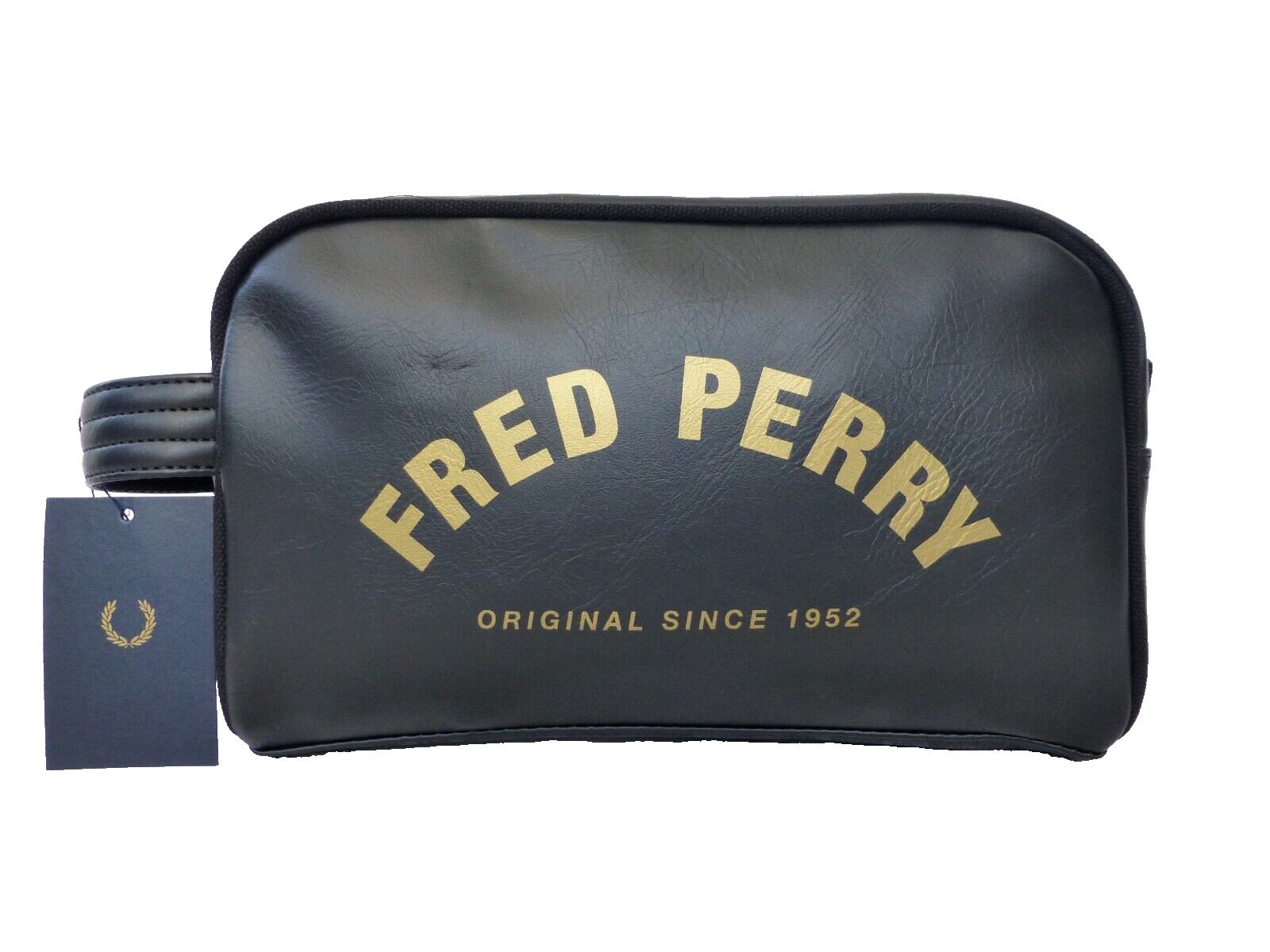 FRED PERRY Travel Kit Bag Mens Arch Branded Black PU Toiletry Wash Bags BNWT