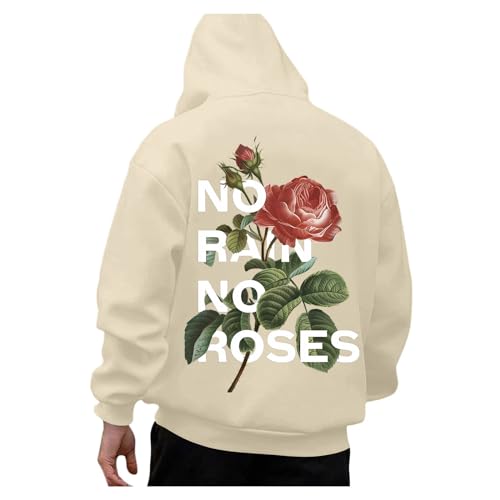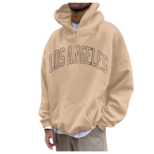 Mens Hoodies - Mens Hoodies Mens Autumn And Winter Back Letter Printing Letter Oversize Loose Plus Size Hooded Pullover Sweater Top Blouse (Khaki L)