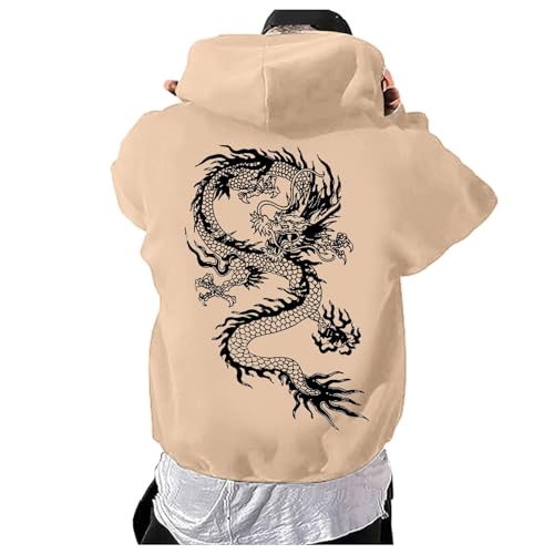Mens Hoodie Pullover - Mens Hoodie Pullover Men's Casual Hoodies & Sweatshirts Loose Fit Pullover Streetwear Graphic Print Autumn Winter Comfortable Fleece (Khaki XXXL)