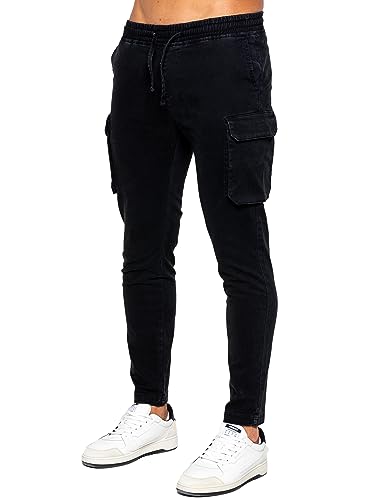 989Zé ENZO Mens Cargo Jeans Elasticated Trousers Casual Cotton Regular Fit Combat Pants EZ612 Trouser Black S