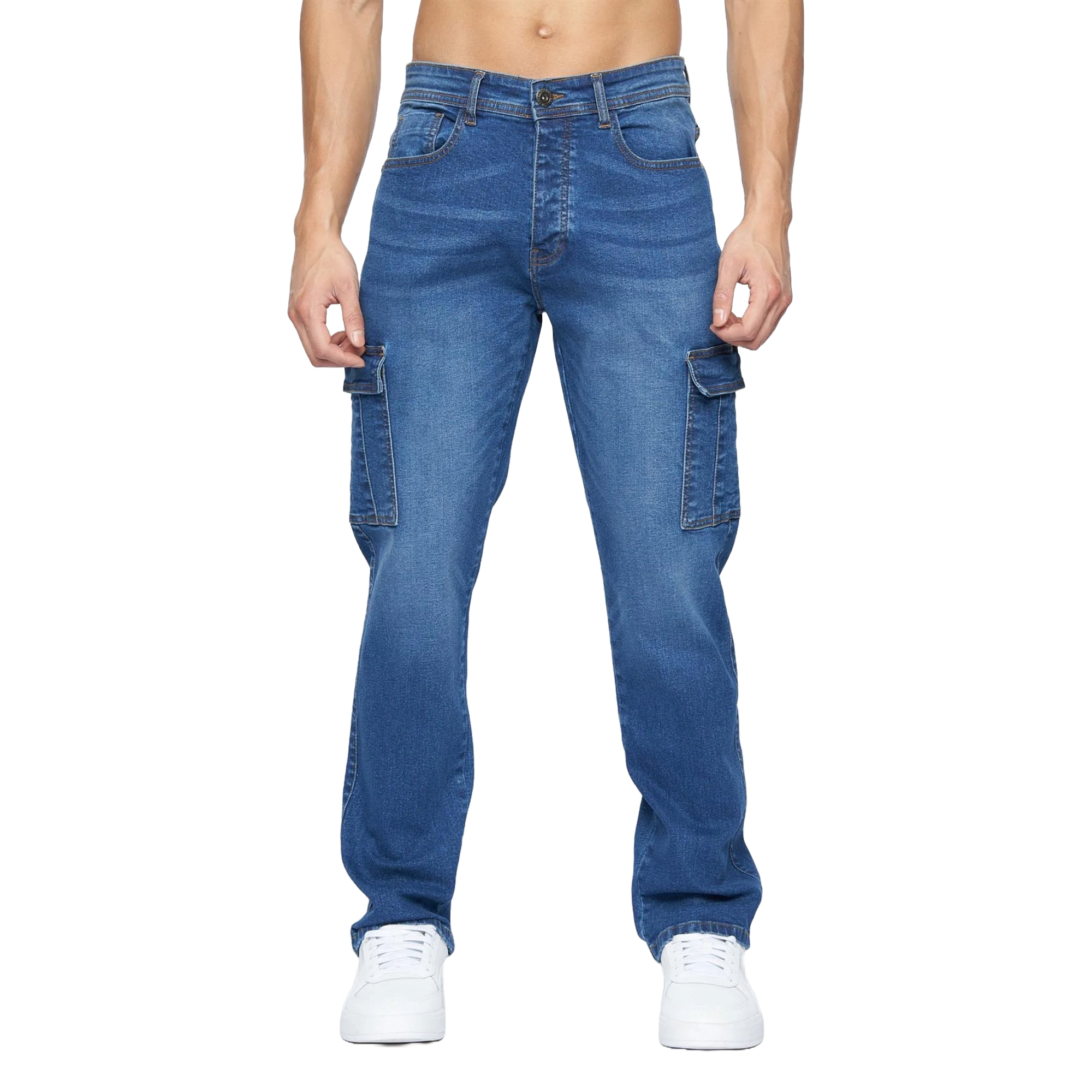 989Zé ENZO Mens Cargo Jeans Elasticated Trousers Casual Cotton Regular Fit Combat Pants (UK, Alpha, M, Regular, Regular, Steel Blue)