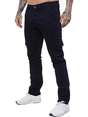 Ze ENZO Jeans Mens Cargo Combat Trousers Chinos Slim Fit Cotton Stretch Work Pants Navy 32R