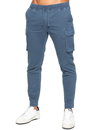 989Zé ENZO Mens Cargo Jeans Elasticated Trousers Casual Cotton Regular Fit Combat Pants (UK, Alpha, S, Regular, Regular, Steel Blue)