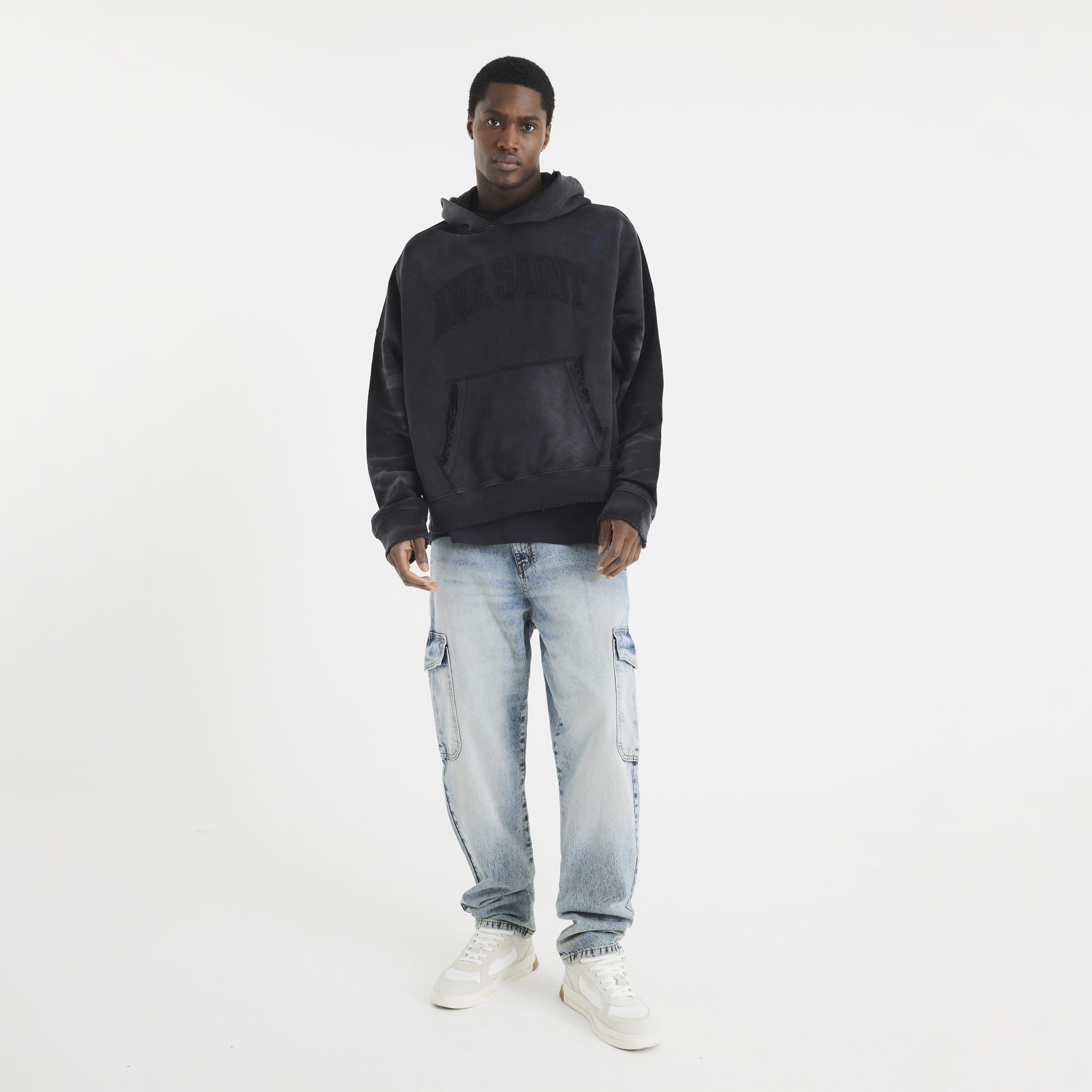 Crosshatch Mens Kremtap Cargo Jeans (Solid Black) - Black & Off-White - Size 34 Regular