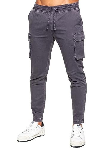 989Zé ENZO Mens Cargo Jeans Elasticated Trousers Casual Cotton Regular Fit Combat Pants EZ612 Trouser Grey L
