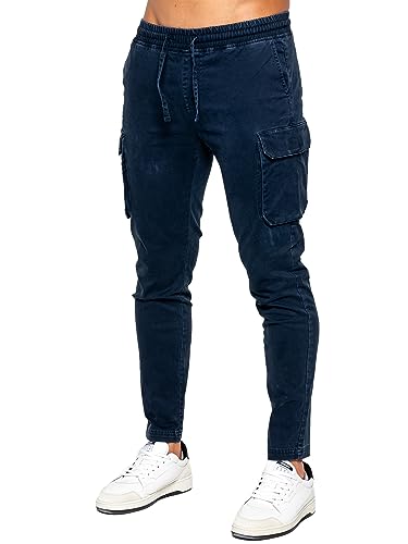 989Zé ENZO Mens Cargo Jeans Elasticated Trousers Casual Cotton Regular Fit Combat Pants EZ612 Trouser Navy M