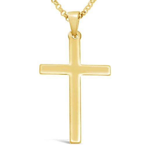 FANCIME Yellow Gold Plated 925 Solid Sterling Silver High Polished Mens Crucifix Sharp Pendant Fine Jewellery for Mens Boys, with Stainless Steel Box Chain Necklace Length 22 Inch