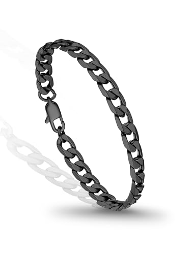 PROSTEEL Mens Bracelet - Stylish Flat Cuban Chain Wrist Link Bracelets Hypoallergenic 316L Stainless Steel Hip Hop Jewellery for Men Boys Black 21CM Length 6MM Width (with Gift Box)