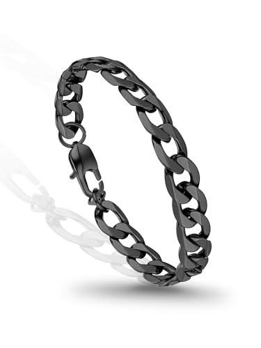 PROSTEEL Mens Bracelet - Stylish Flat Cuban Chain Wrist Link Bracelets Hypoallergenic 316L Stainless Steel Hip Hop Jewellery for Men Boys Black 21CM Length 9MM Width (with Gift Box)