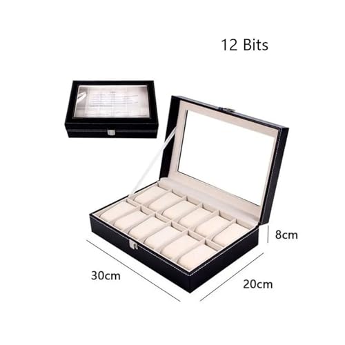 KIFSDLF Mens 6 10 12 Grids PU Leather Watch Display Case Collection Storage Holder Box Jewelry Storage Packaging Box Watches Accessories(Black-B3)