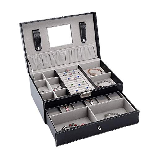 Jewellery Box 2 Layer Pu Leather Jewellery Boxes for Women Girls Teens Men's Jewelry Box Jewelry Organizer Box Jewelry Storage Box with Lock Removable