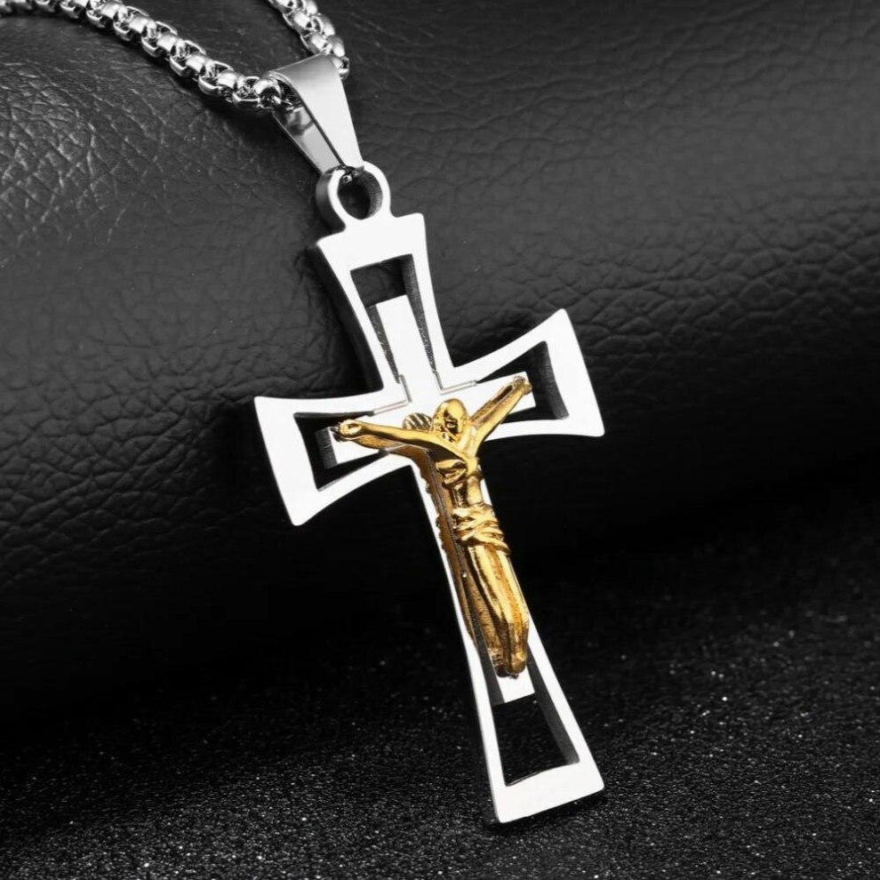 Stainless Steel Silver And Cross Jesus Crucifix Pendant Necklace Mens Biker Jewelry Box Chain Birthday Gift