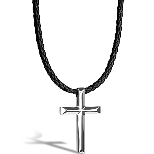 SERASAR Leather Chain Mens Necklace with Pendant - 60cm Silver Cord Jewelry Box for Real Gift Band