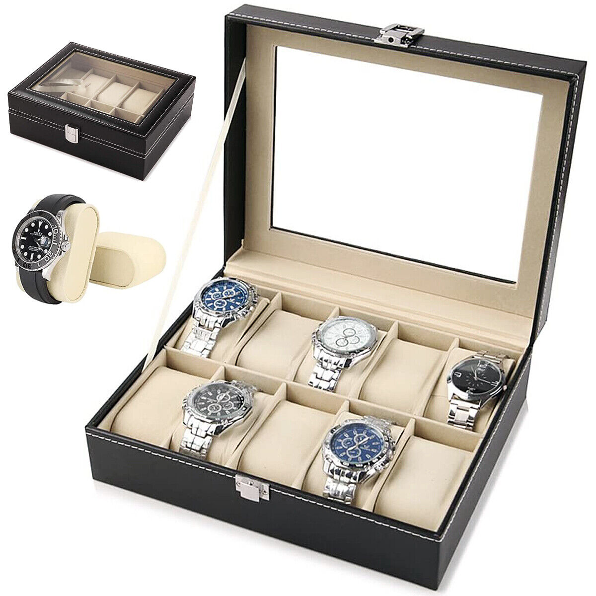 10 Grid PU Leather Mens Watch Box Display Case Watch Travel Case Jewelry Storage