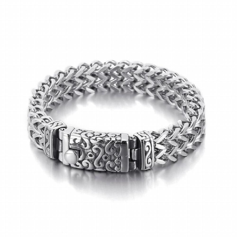 Punk High Polish Textured Bracelet Mens Stainless Steel Bicycle Chain Mens Jewelry Accessories Box Chain