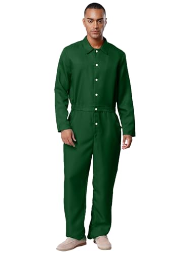 winying Halloween Prisoner Costume for Mens Cosplay Jumpsuit Long Sleeve Button-down Unitard Green L