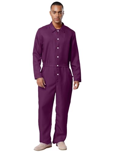 winying Halloween Prisoner Costume for Mens Cosplay Jumpsuit Long Sleeve Button-down Unitard Purple 3XL