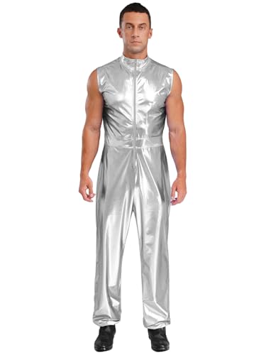 Zaldita Mens Shiny Metallic Jumpsuit Jazz Hippies Rave Outfits Halloween Astronaut Space Costume Silver XL