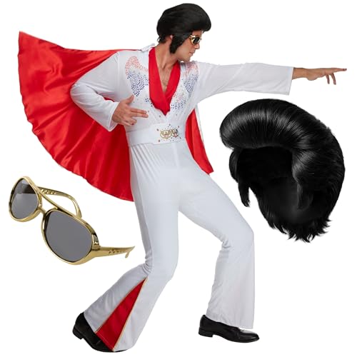 Morph Las Vegas Fancy Dress Men, Mens Disco Jumpsuit With Wig And Glasses, 70s Fancy Dress Mens, Halloween Costumes Men, X-Large