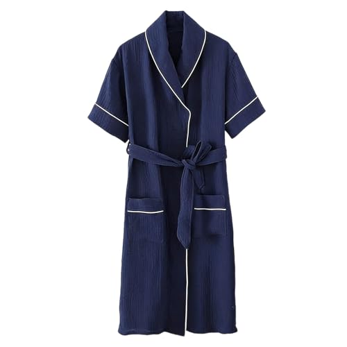 Mens Lightweight Dressing Gown Summer Dressing Gown, Breathable Skin-Friendly Super Soft Highly Absorbent Stylish Cozy Sleepwear Classic Spa Gym Shawl Nightwear