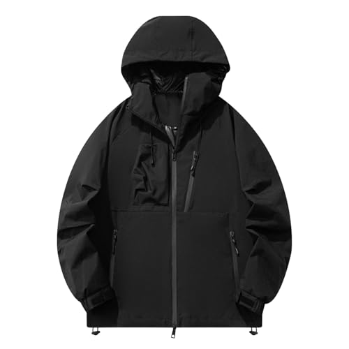 Men's Lightweight Raincoat - Windbreaker Men's Softshell Jacket Large Sizes Transition Jacket Warm Winter Jacket Casual Hooded Jacket Winter Rain Jacket Funky Wind Jacket with Pockets and Hood Winter