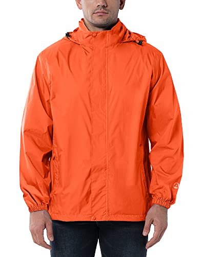 Outdoor Ventures Men's Lightweight Raincoat Packable Rain Jacket Waterproof Raincoat with Hood Active Outdoor Windbreaker (Orange Red-Stowaway Hood, L (Chest: 42-44))