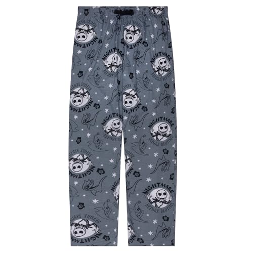 Disney Nightmare Before Christmas 100% Cotton Mens Lounge Trousers All Over Print Pyjama Bottoms, Nightmare, L, Grey