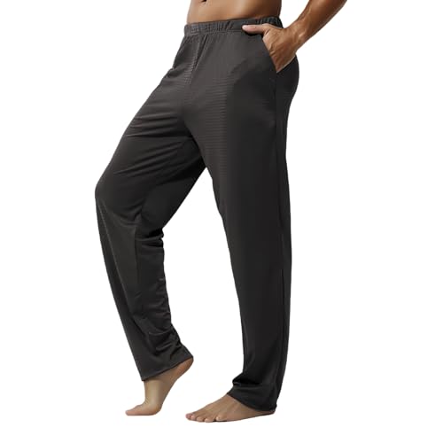 Hybursky Mens Lounge Trousers Pjs Bottoms Breathable Pyjama Pants Nightwear Elastic Waisted Lounge Pants with Pockets PJs Solid Summer Loungewear(Grey/3XL)