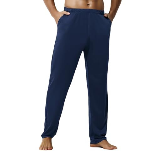 Hybursky Mens Lounge Trousers Pjs Bottoms Breathable Pyjama Pants Nightwear Elastic Waisted Lounge Pants with Pockets PJs Solid Summer Loungewear(Navy Blue/2XL)